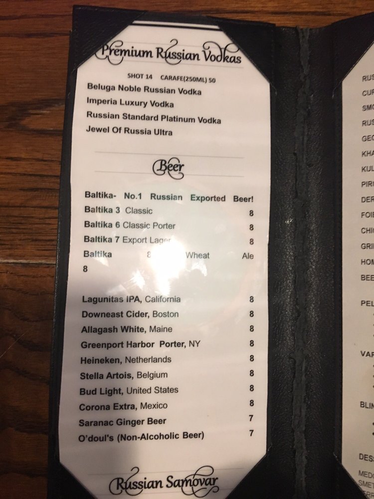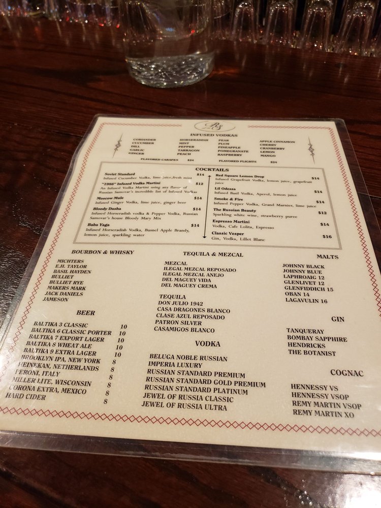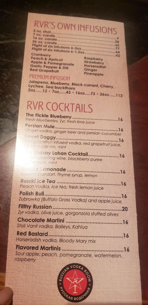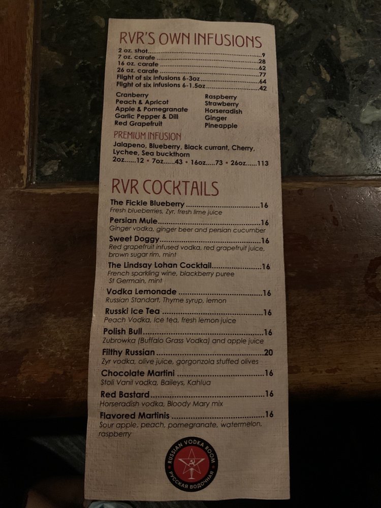 Russian Vodka Room Menu