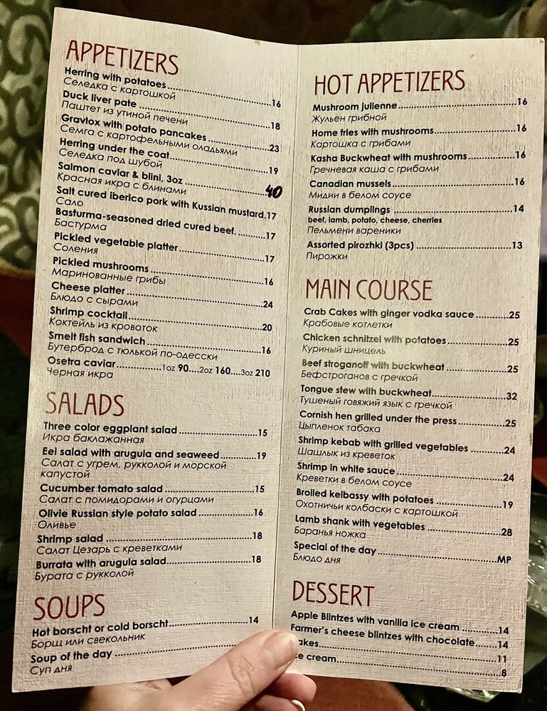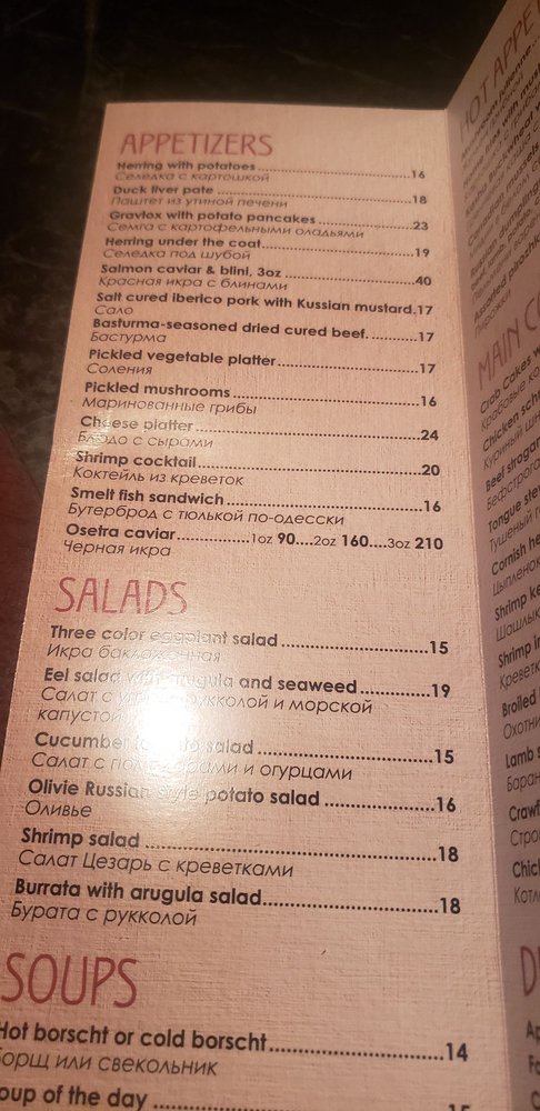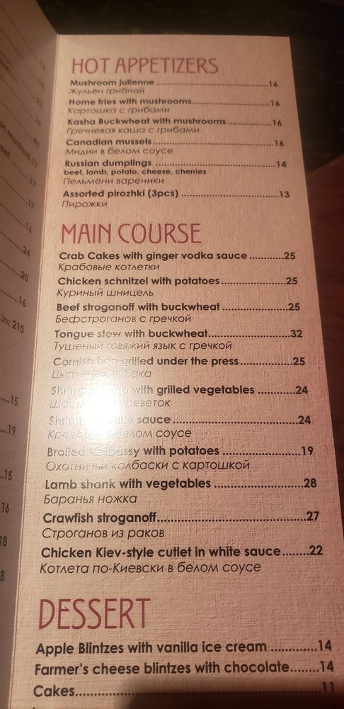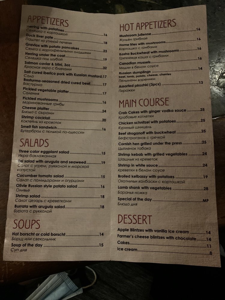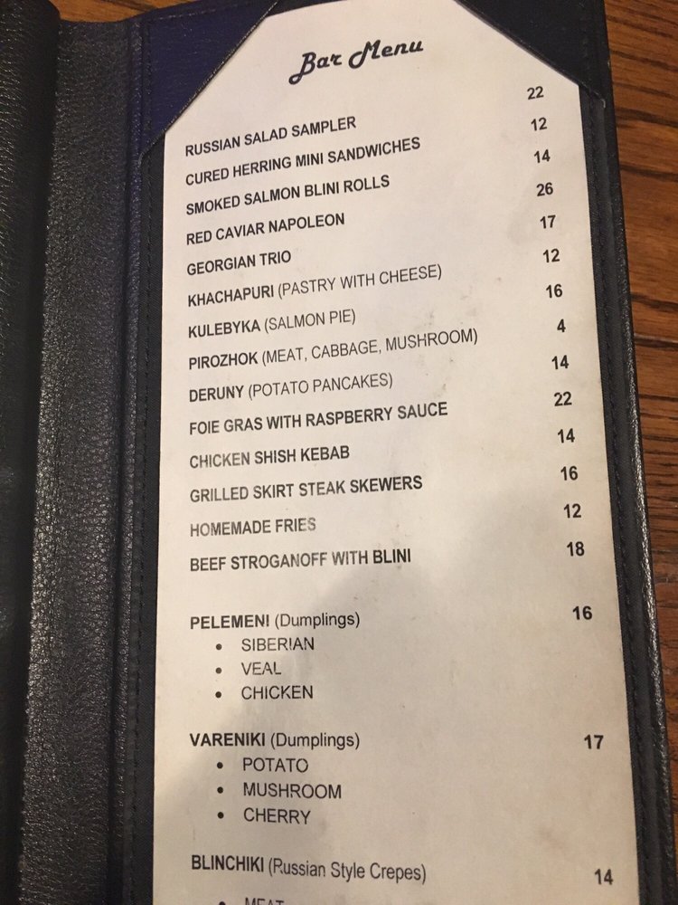 Introducing Russian Vodka Room, a hidden gem in the heart of midtown NYC offering a unique blend of Jazz, Blues, and authentic Russian cuisine. The intimate and classy ambiance sets the stage for an unforgettable dining experience. With a diverse menu featuring herring, caviar, potato pancakes, and signature vodka shots, every dish is a flavor-packed journey into Russian culture. Customers rave about the exceptional service, live music, and generous portions. The extensive vodka selection and handcrafted infusions add a touch of sophistication to the dining experience. Whether you're looking for a late-night snack or a place to unwind with friends, Russian Vodka Room is a must-visit destination for food and music enthusiasts alike. Experience the taste of Russia in the heart of New York City at Russian Vodka Room.